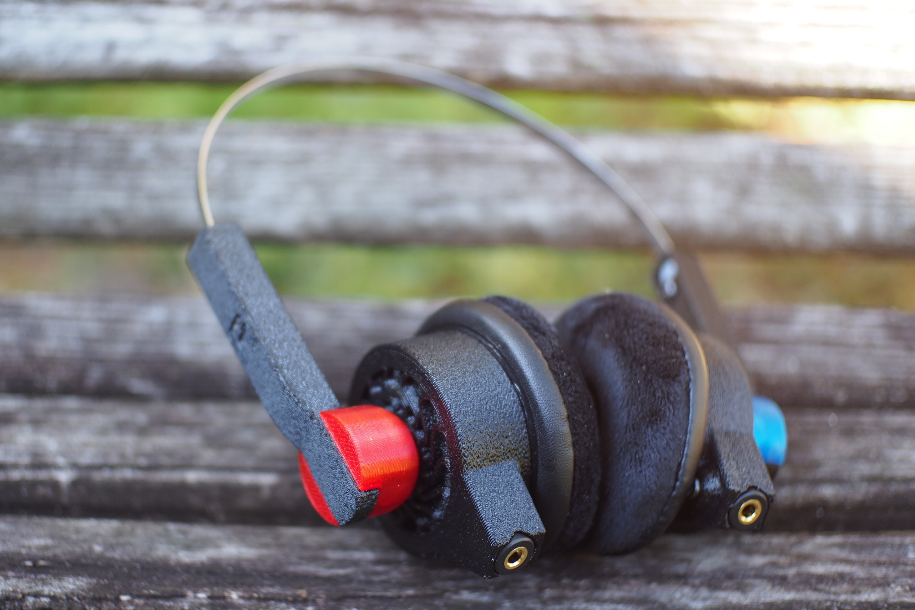 A FDM 3d printed custom headphone. A very open design creates a transparent listening experience.